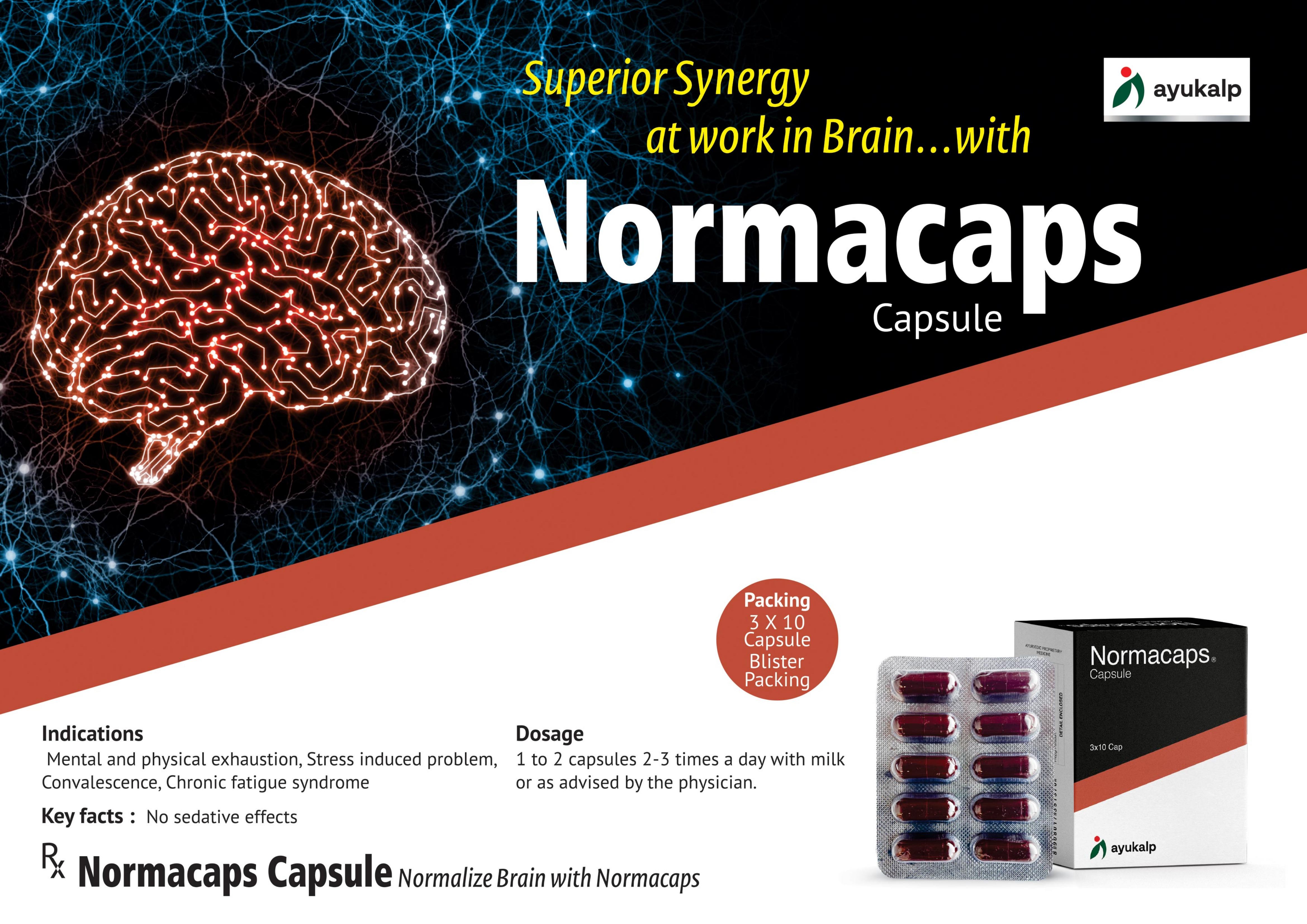 Normacaps Capsule is very useful to overcome ill effects of stress. in weight reduction. It has no side effects. It reduces level of stress, nourishes brain cells, improves concentration of brain, and eradicate mental fatigue. It is powerful brain tonic. It is good to keep calm state of mind.